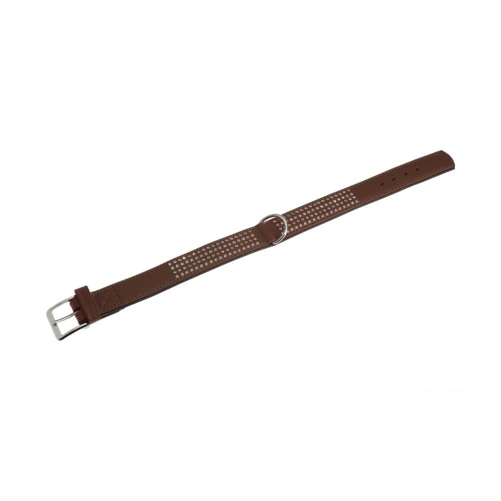 KARLIE Halsband VINTAGE STRASS Leder Braun 40mm 65cm Braun unterlegt für Hunde