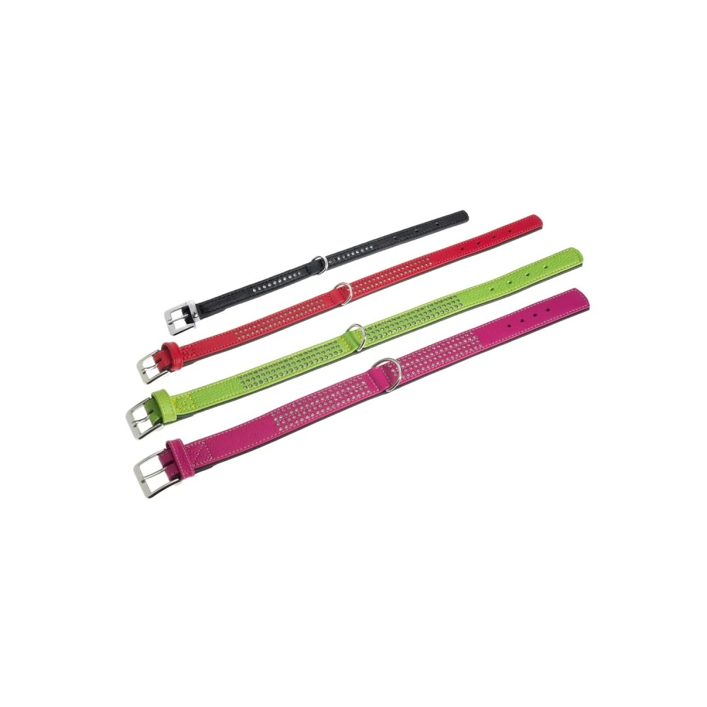 KARLIE Halsband VINTAGE STRASS Leder Kiwi 40mm 65cm schwarz unterlegt für Hunde