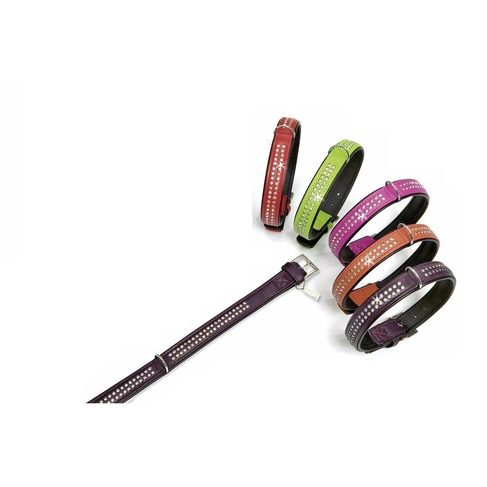 KARLIE Lederhalsband VINTAGE STRASS violett 45cm schwarz unterlegt für Hunde