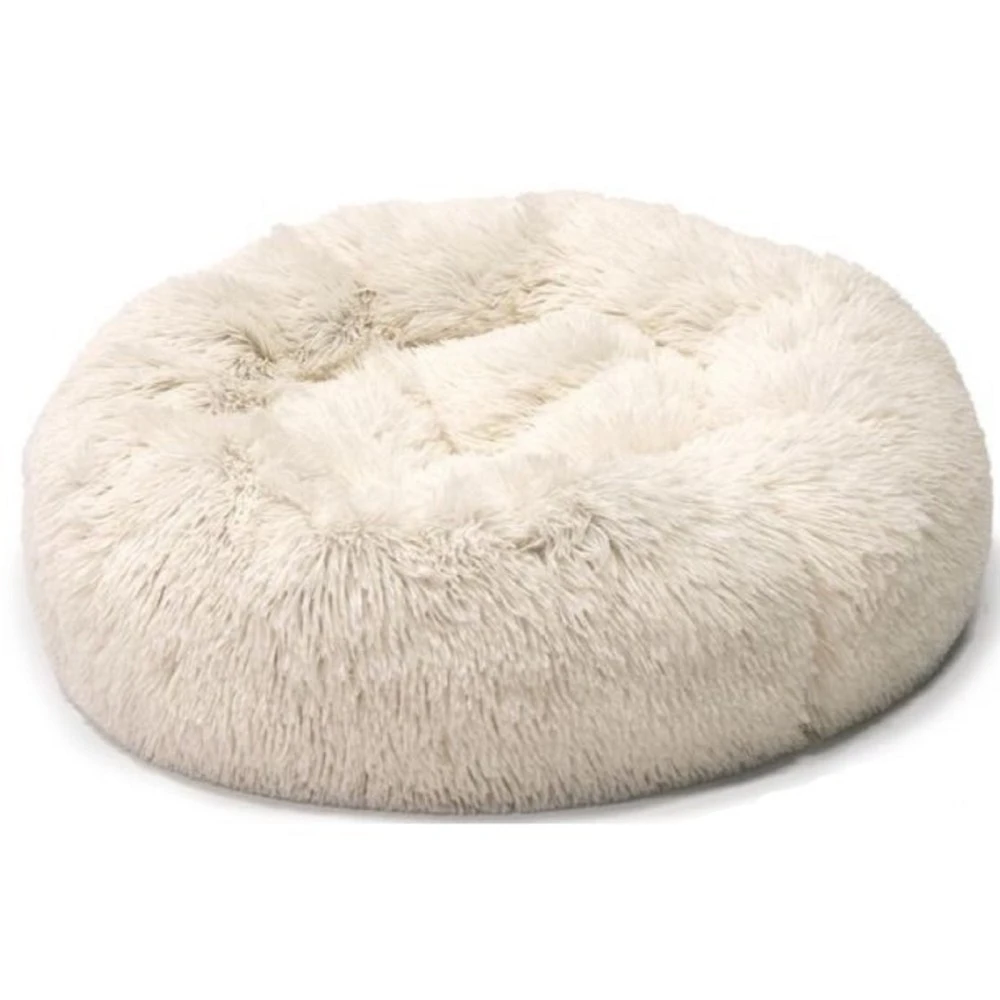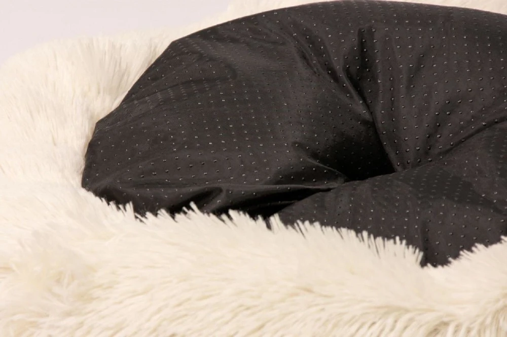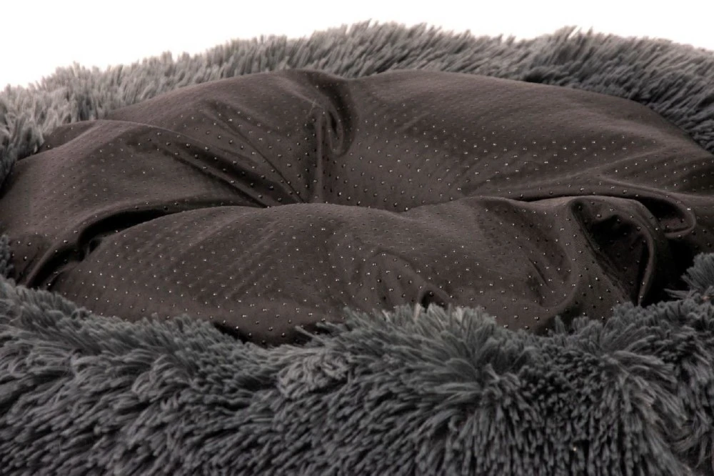 Das runde Hundebett aus langhaarigem Plüsch bietet Haustieren einen kuschelig weichen, fluffigen Ruheplatz und ausgesprochenen Liegekomfort durch die großzügige Füllung. Der hohe Rand des Bettes schafft ein Gefühl von Sicherheit und stützt den darauf abgelegten Kopf des Hundes oder der Katze. In dieser wohligen Atmosphäre kann der Vierbeiner bestens entspannen und ausruhen.