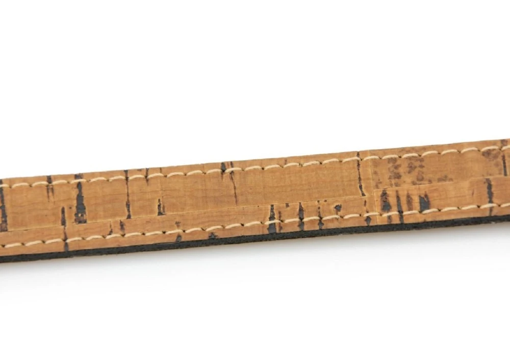 Wie der Name es vermuten lässt ist es Kork, welcher mit dem Leder verbunden und dann abgenäht wird. Die hellen und dunklen Nähte bilden dabei einen interessanten Kontrast zur jeweiligen Farbe des Korks und des Leders und werden durch verchromte Beschläge stilvoll ergänzt.